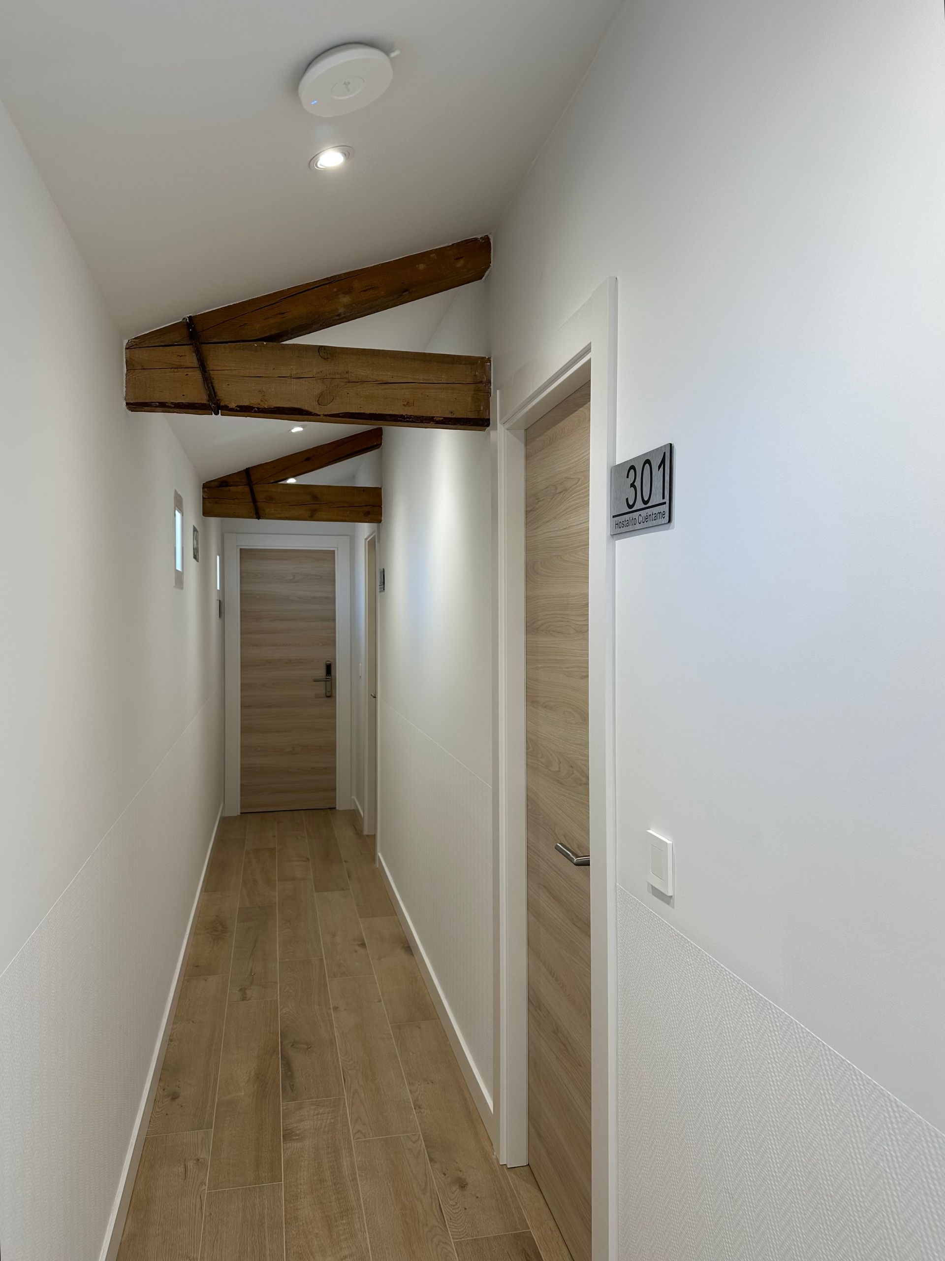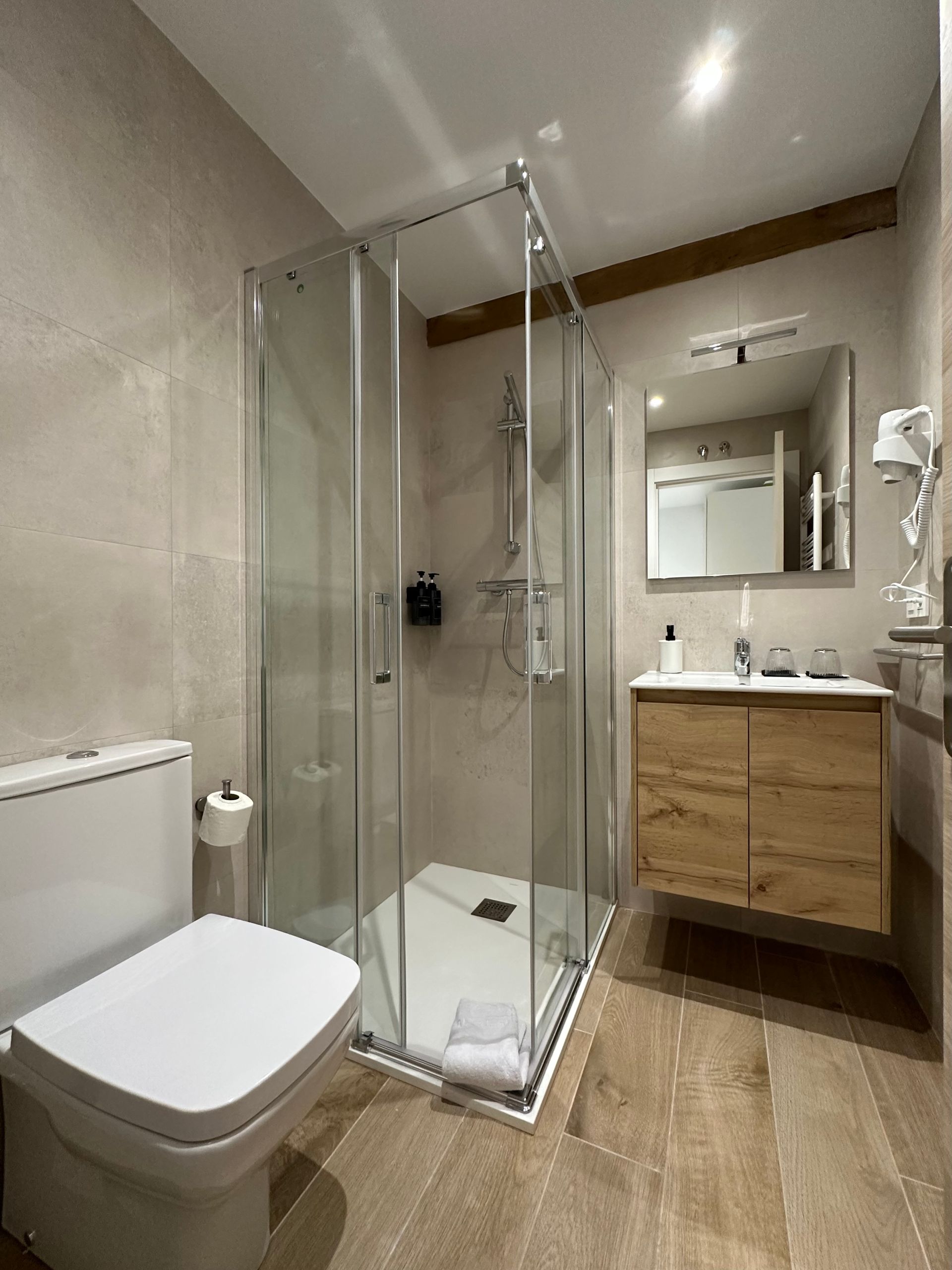 La arquitectura contemporánea se integra con naturalidad en la estructura existente, generando espacios elegantes, cálidos y llenos de carácter. El resultado es un alojamiento singular, donde patrimonio, diseño y confort se combinan para ofrecer una experiencia única al huésped.