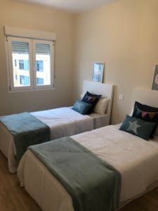 Además del salón, dos de los dormitorios se sitúan en la fachada principal, quedando únicamente los dos baños y el dormitorio de menos uso hacia el interior, aprovechando de esta forma la luminosidad de la vivienda ya comentada.