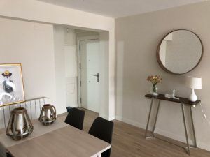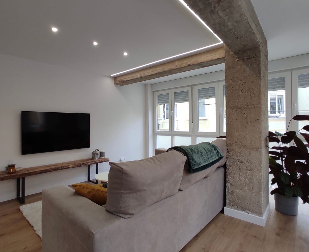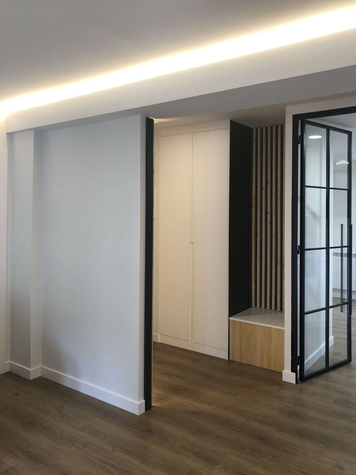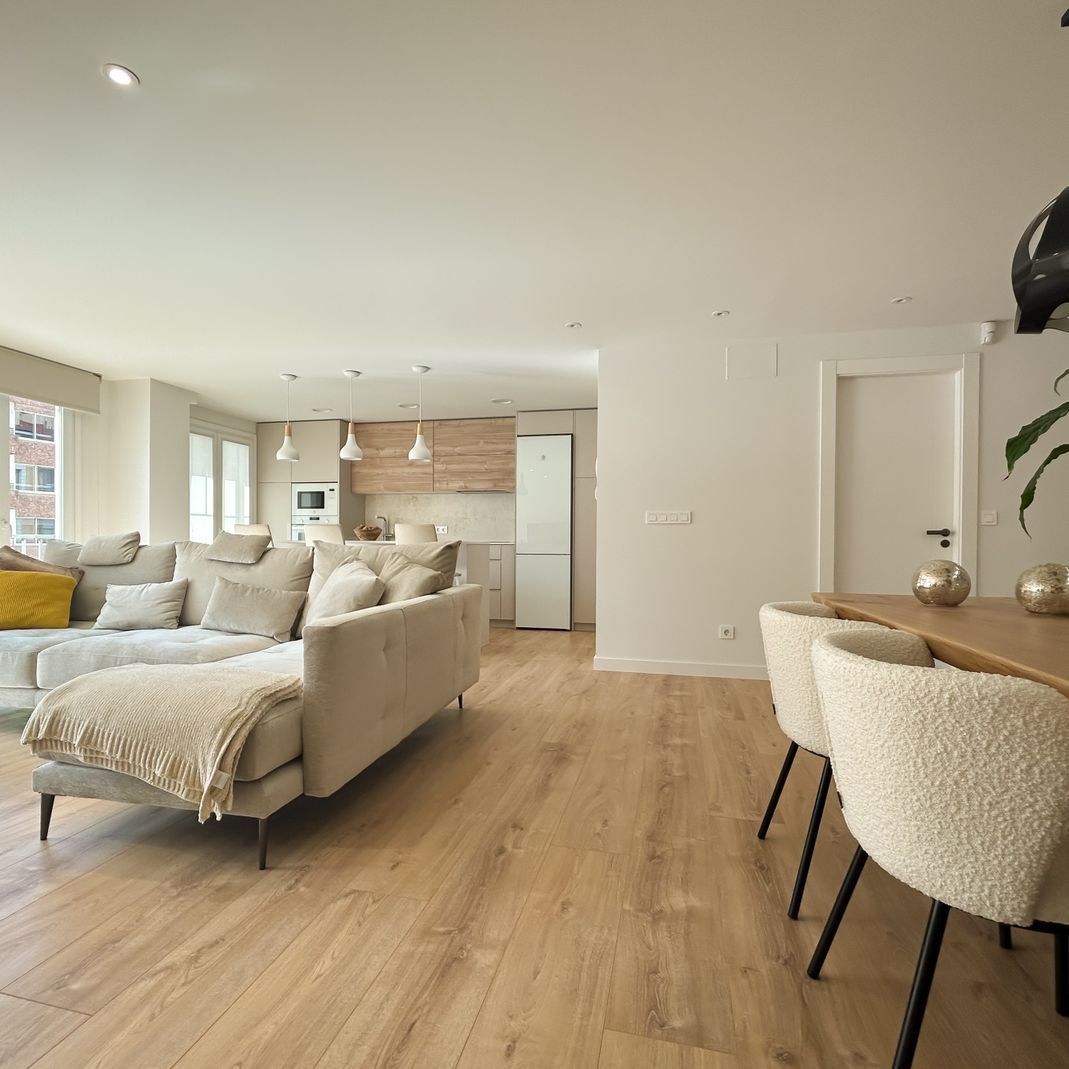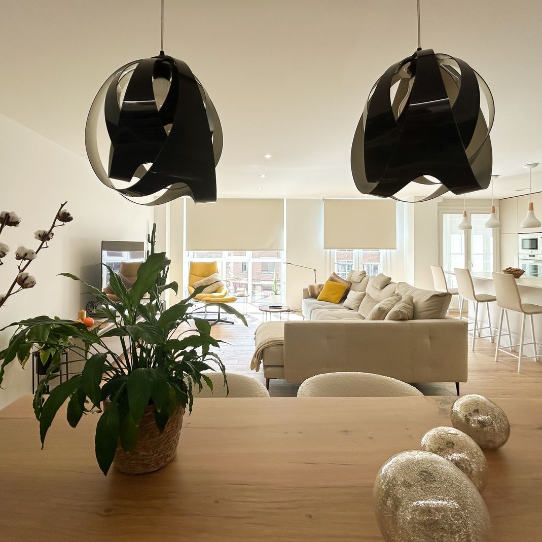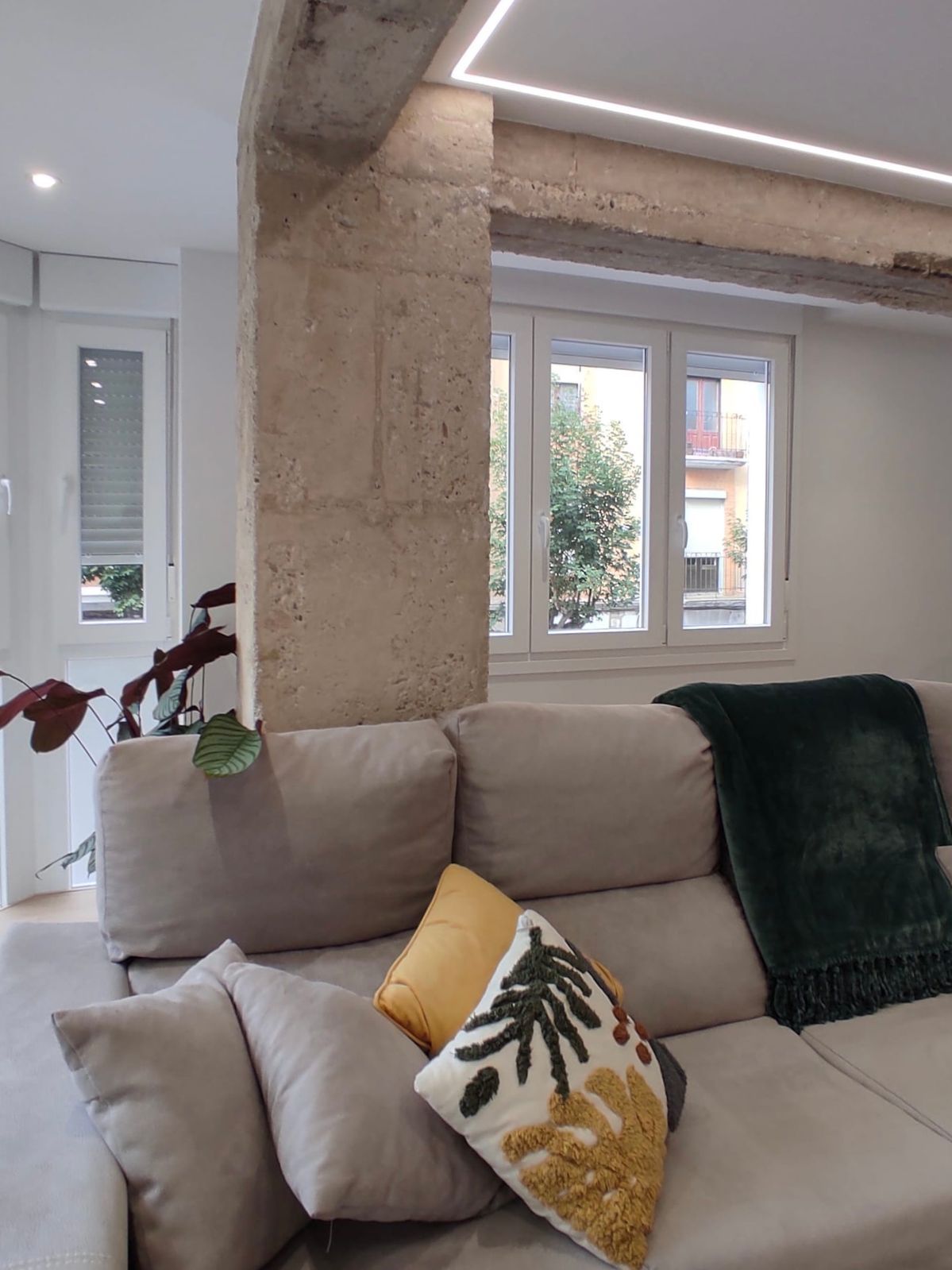Esta vez, nos ubicamos en uno de los barrios con más vida y servicios de la ciudad de Burgos, a solo un paso del Casco Histórico y del centro de la ciudad. Por dichas características y el perfil de nuestro cliente, tuvimos muy claro desde el principio que tenía que ser una vivienda dinámica y funcional como características principales, para ir acorde con el lugar en el que se encuentra y con el uso que se va a hacer.