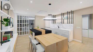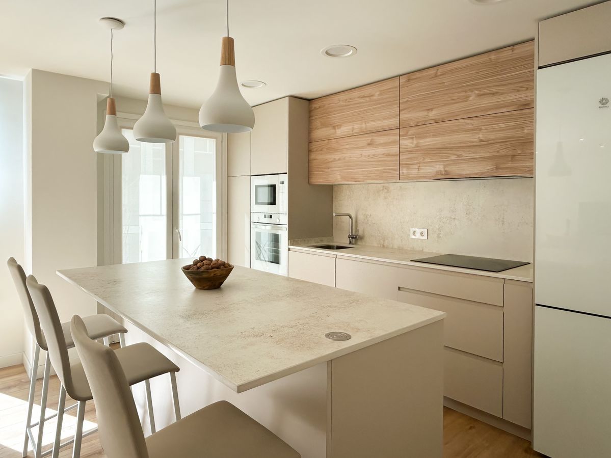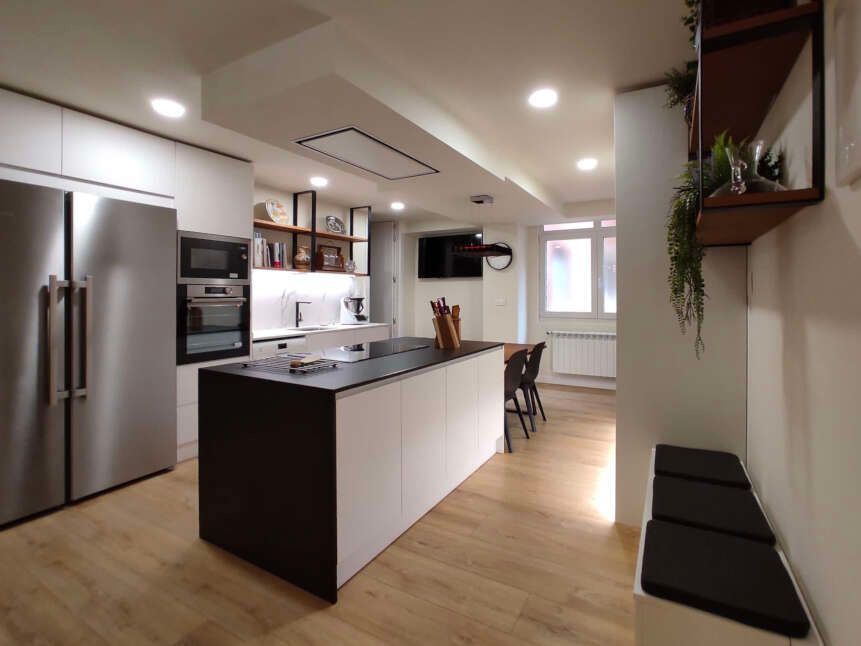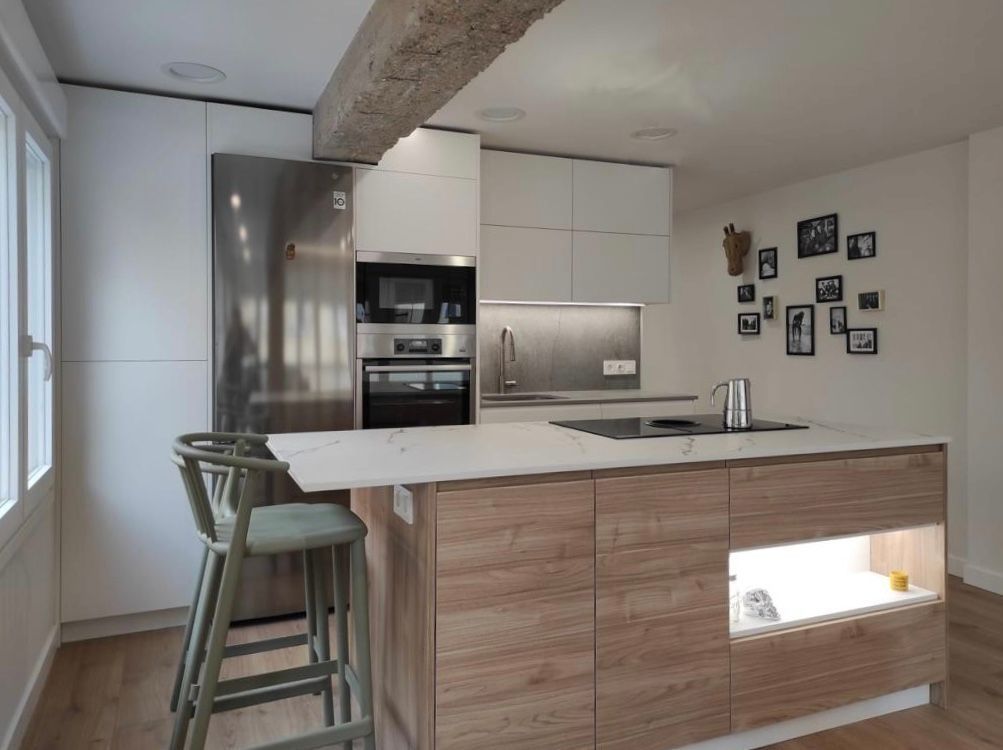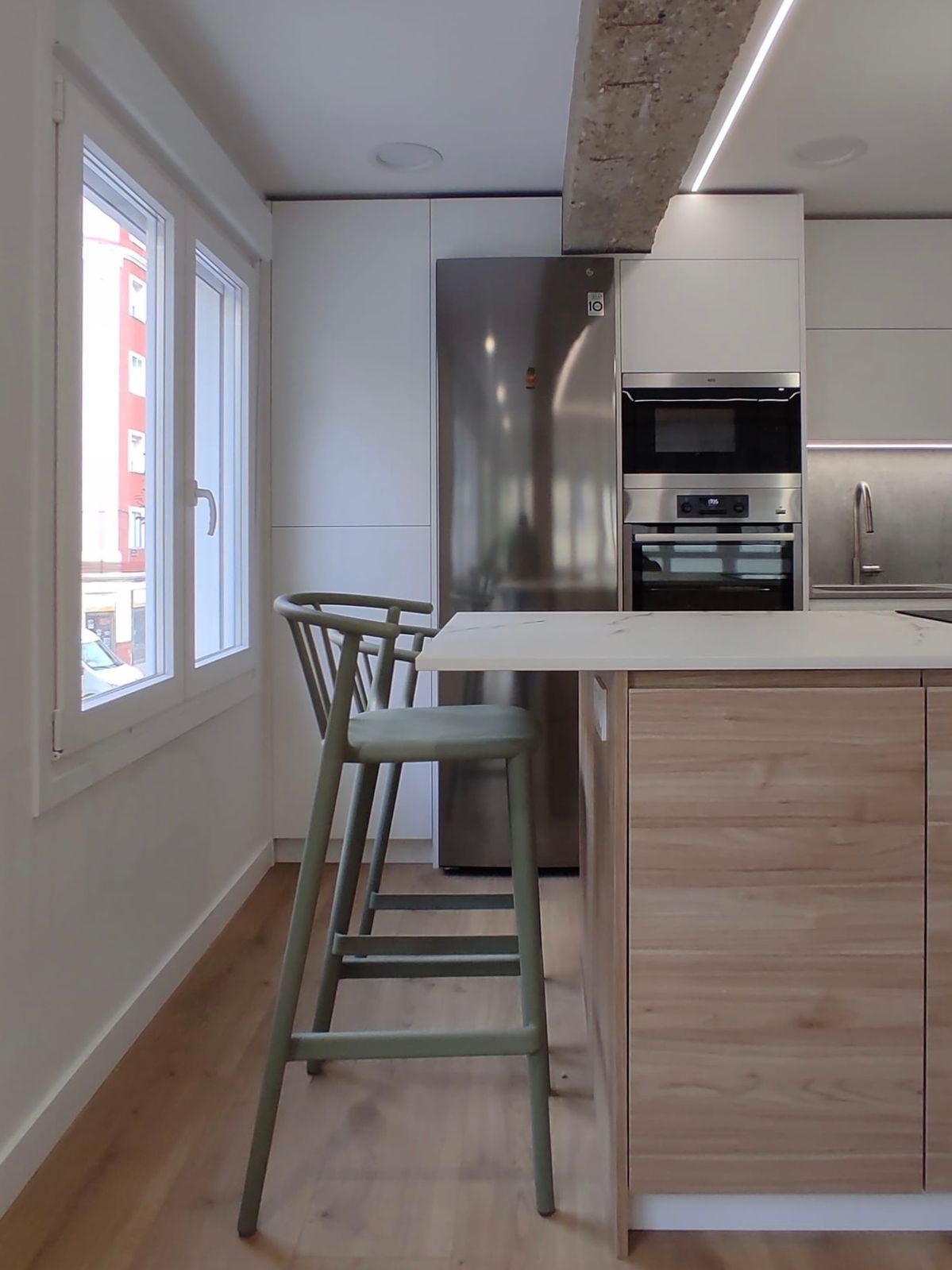 La actuación principal se centró en las estancias a las que más importancia dan nuestros clientes, como son la cocina, el salón-comedor y el dormitorio, en las que mediante la integración de las terrazas y la maximización de la luz logramos conseguir estancias más amplias, luminosas y agradables.