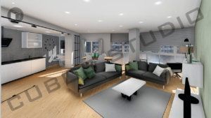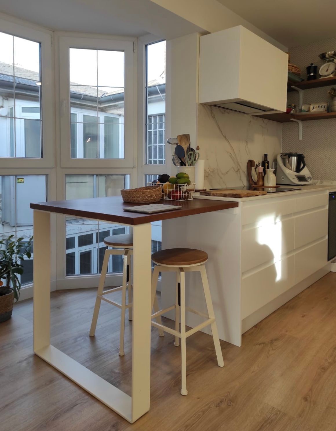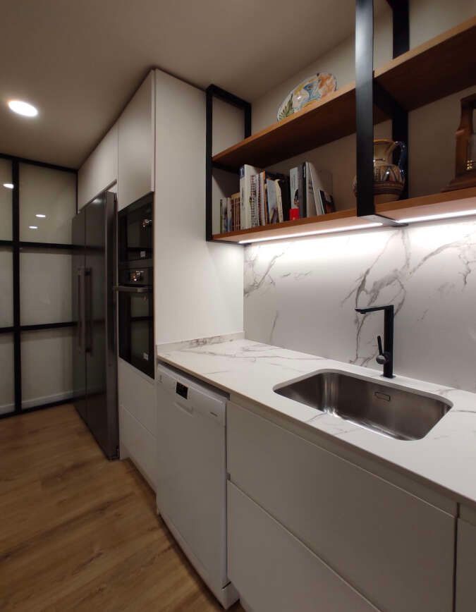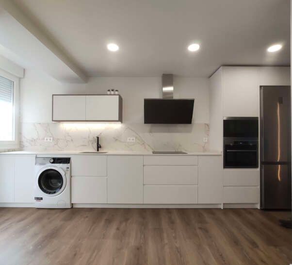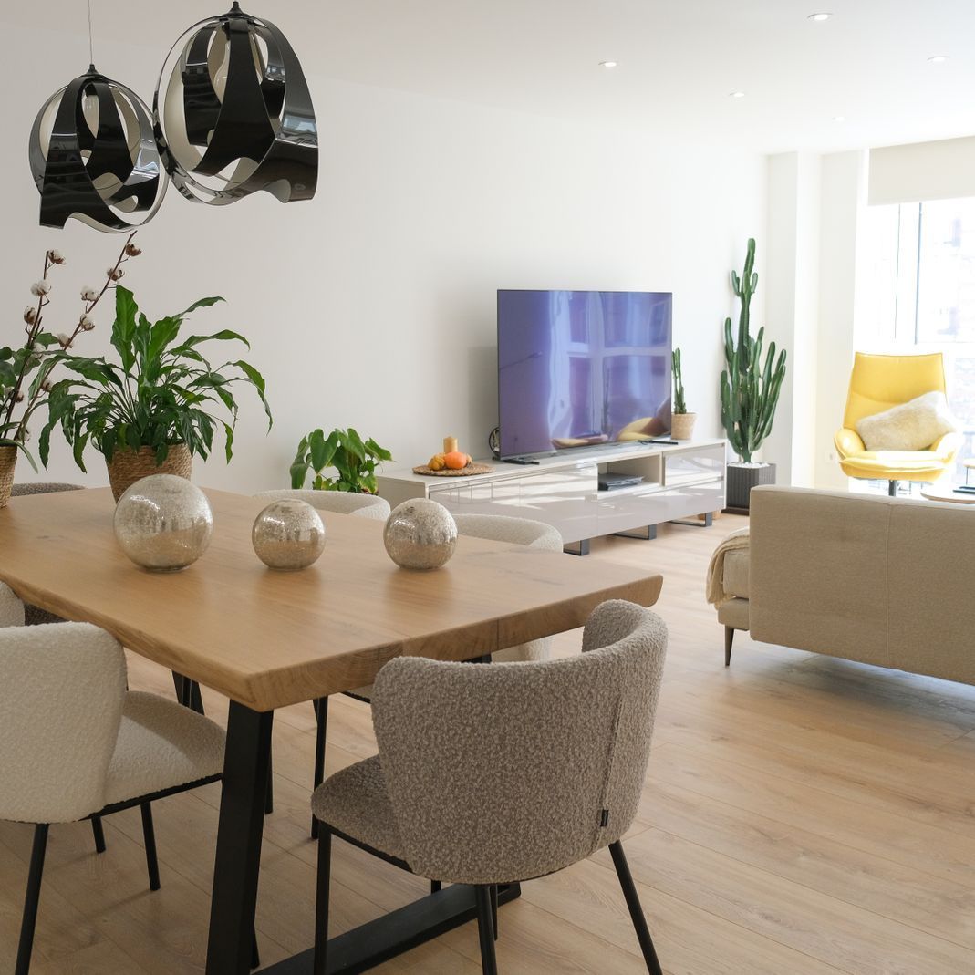 Por encargo del cliente, realizamos la decoración y el mobiliario de la vivienda, así como la cocina, desde un punto minimalista y siempre ajustándonos al presupuesto.