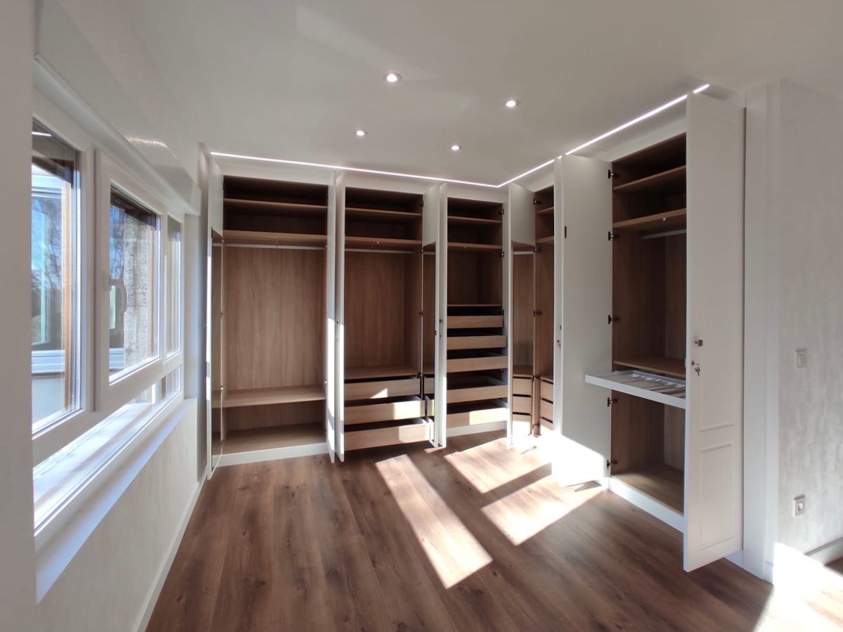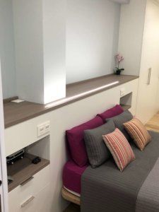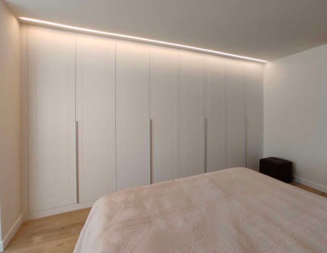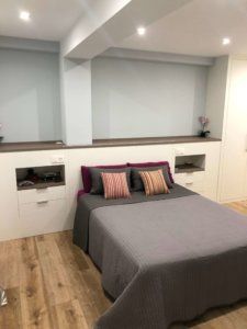 Una de las máximas para la realización de esta vivienda fue intentar conseguir la integración de espacios como puede reflejarse perfectamente en la estancia Salón-Comedor-Cocina y en el dormitorio con el vestidor integrado.