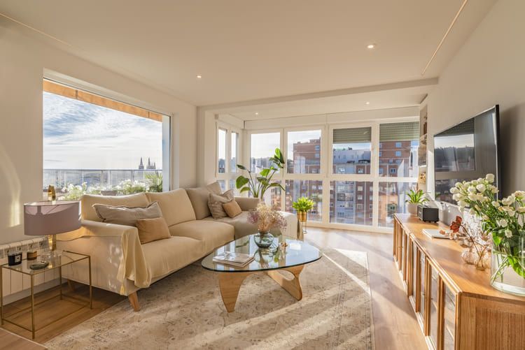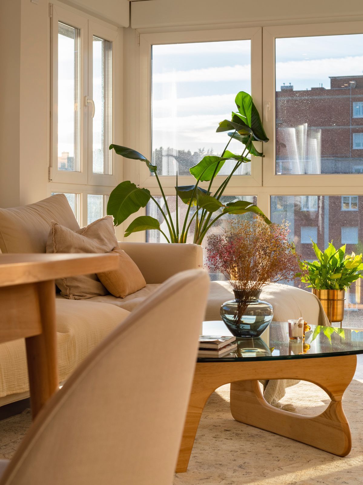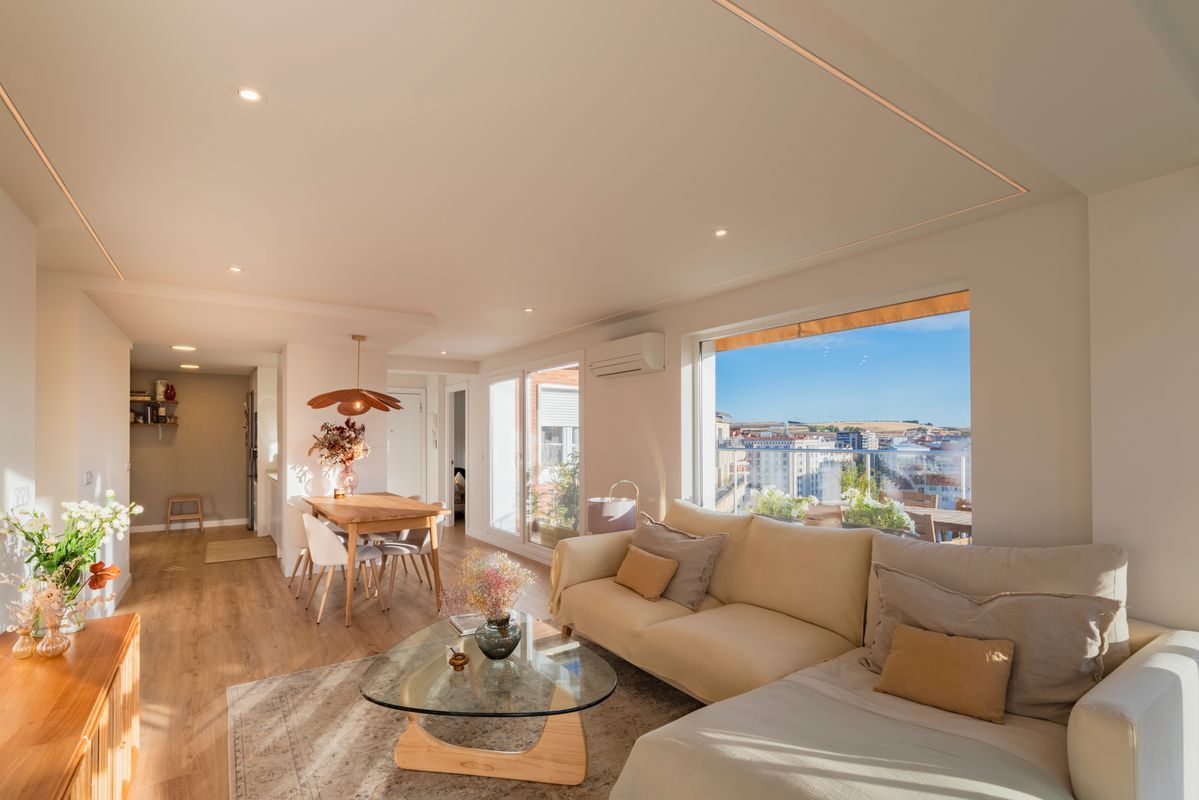 Para conseguir nuestros objetivos, nos aprovecharemos de sus grandes ventanas y terrazas pero sobre todo de la altura que nos ofrece esta vivienda y su buena orientación.
