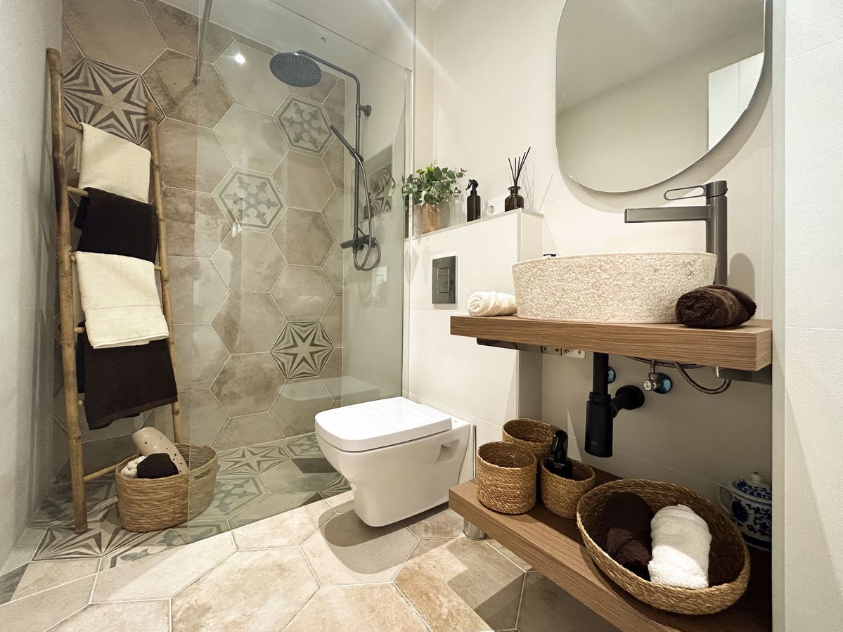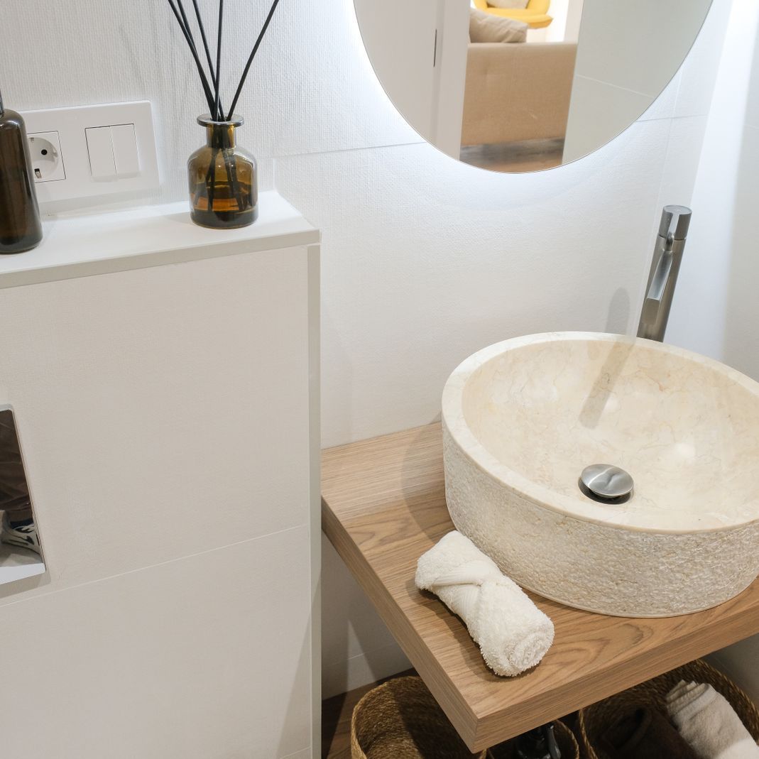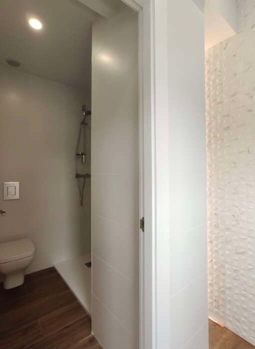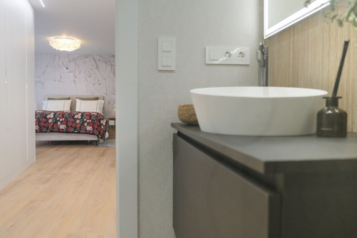 Una vivienda cómoda y funcional adaptada para un uso diario y dinámico. Conseguimos diferenciar claramente la zona de día, siendo ésta un espacio completamente abierto y luminoso. A pesar de las reducidas dimensiones de la vivienda, también se logró generar una amplia zona de noche con dos baños y dos dormitorios, contando el principal con baño integrado y un gran vestidor.