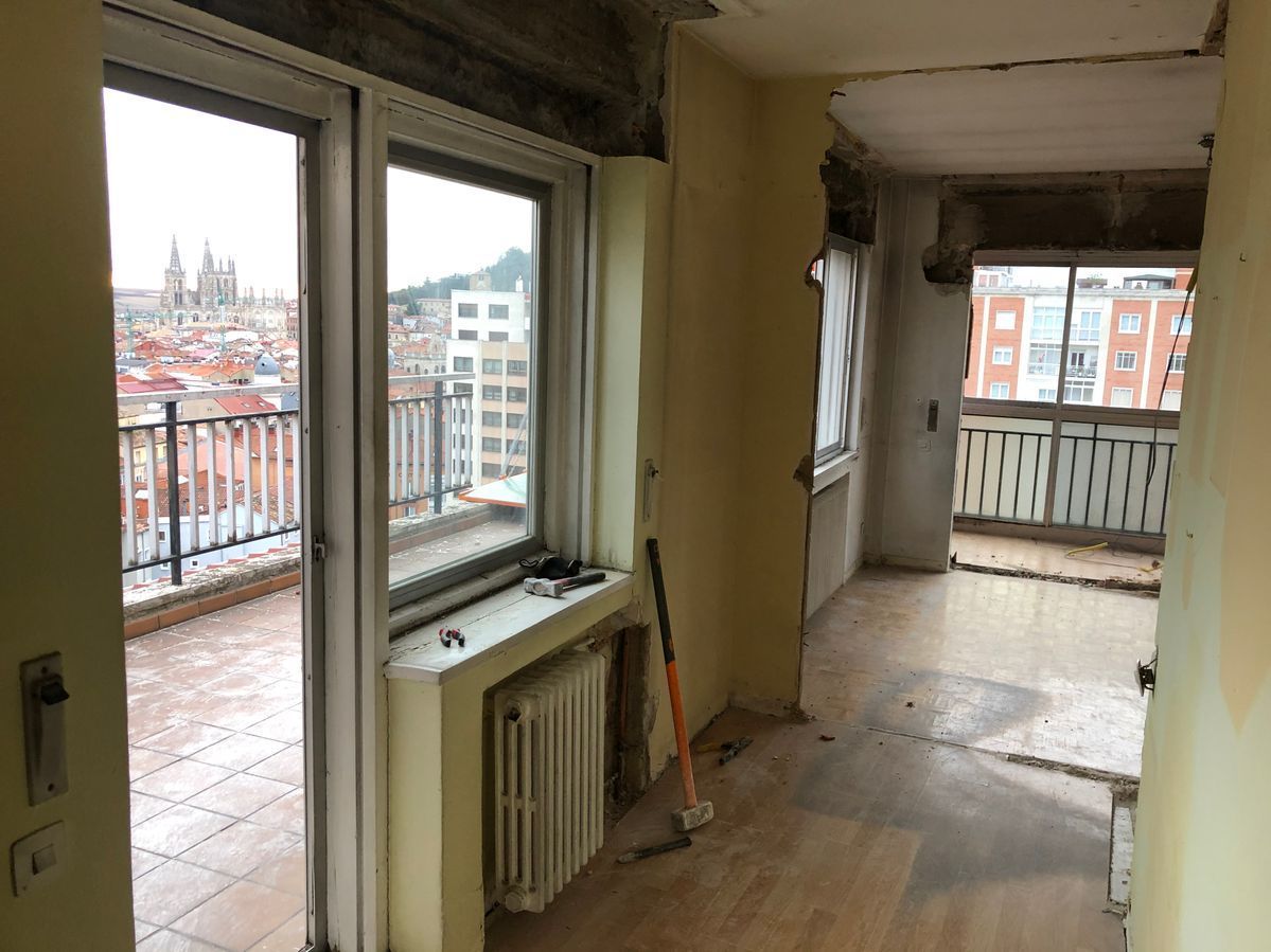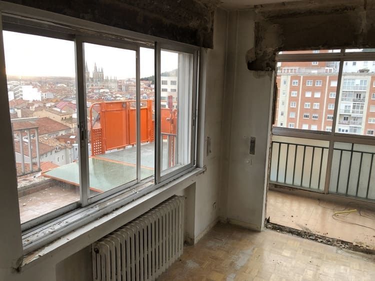 En pleno centro de Burgos nos encontramos con un edficio no demasiado antiguo para lo que estamos acostumbrados, pero con un gran defecto: su deficiente distribución y aprovechamiento de la vivienda. Esto hace que penalice mucho una de sus grandes virtudes, la magnífica luminosidad que nos ofrecen sus enormes ventanales y su maravillosa orientación.