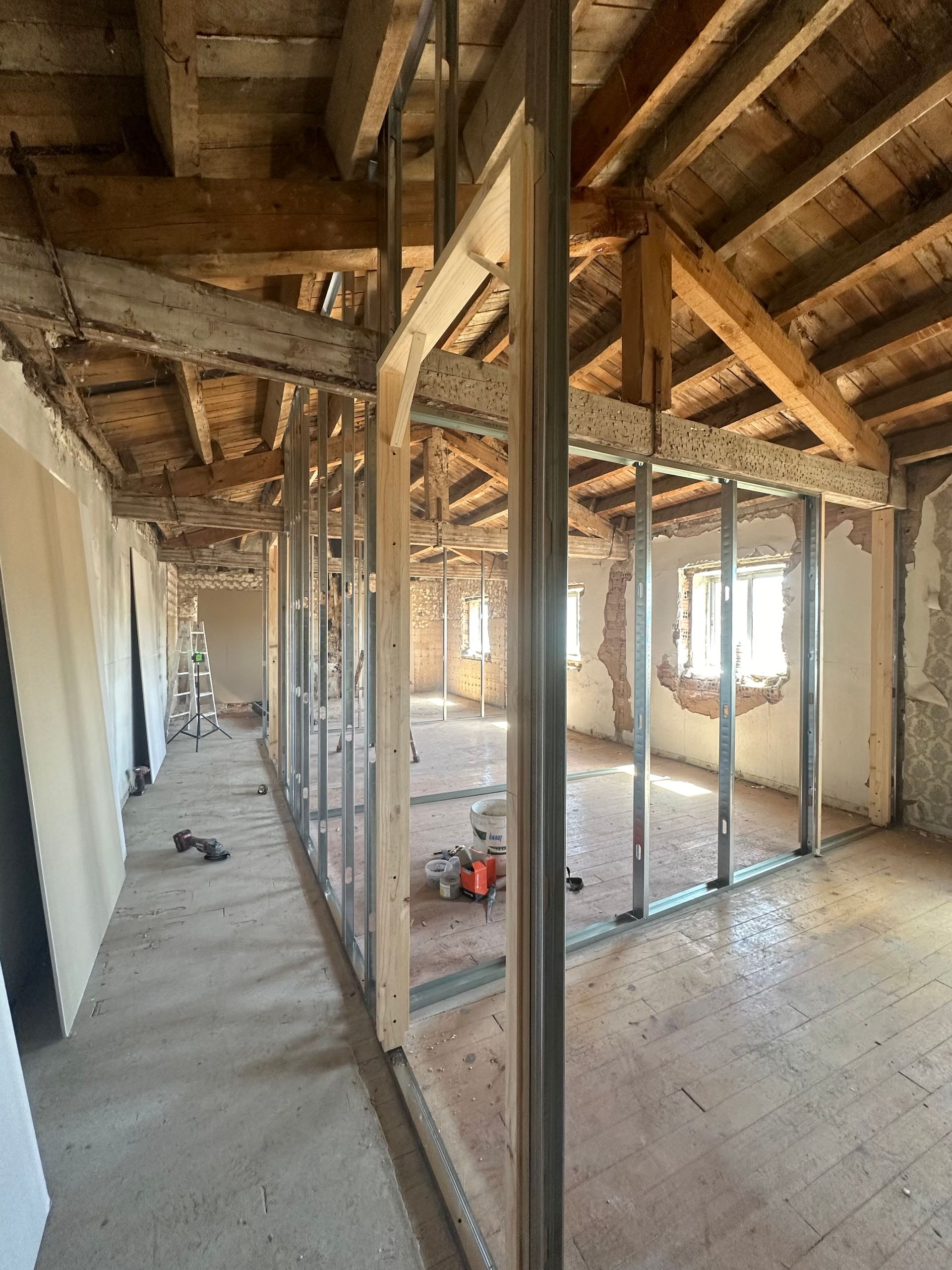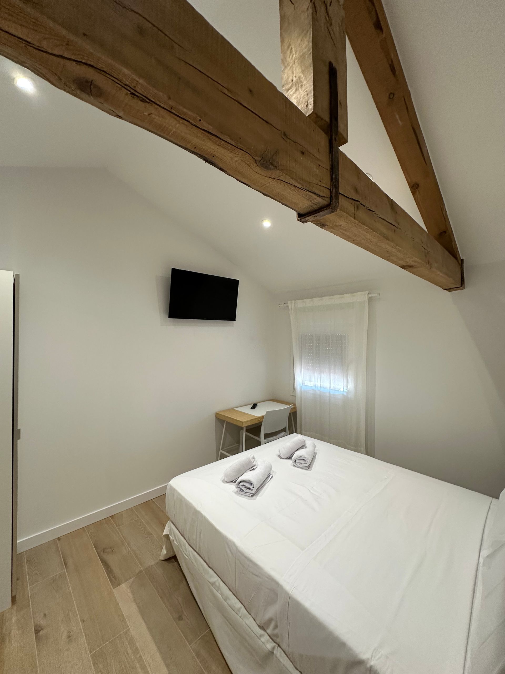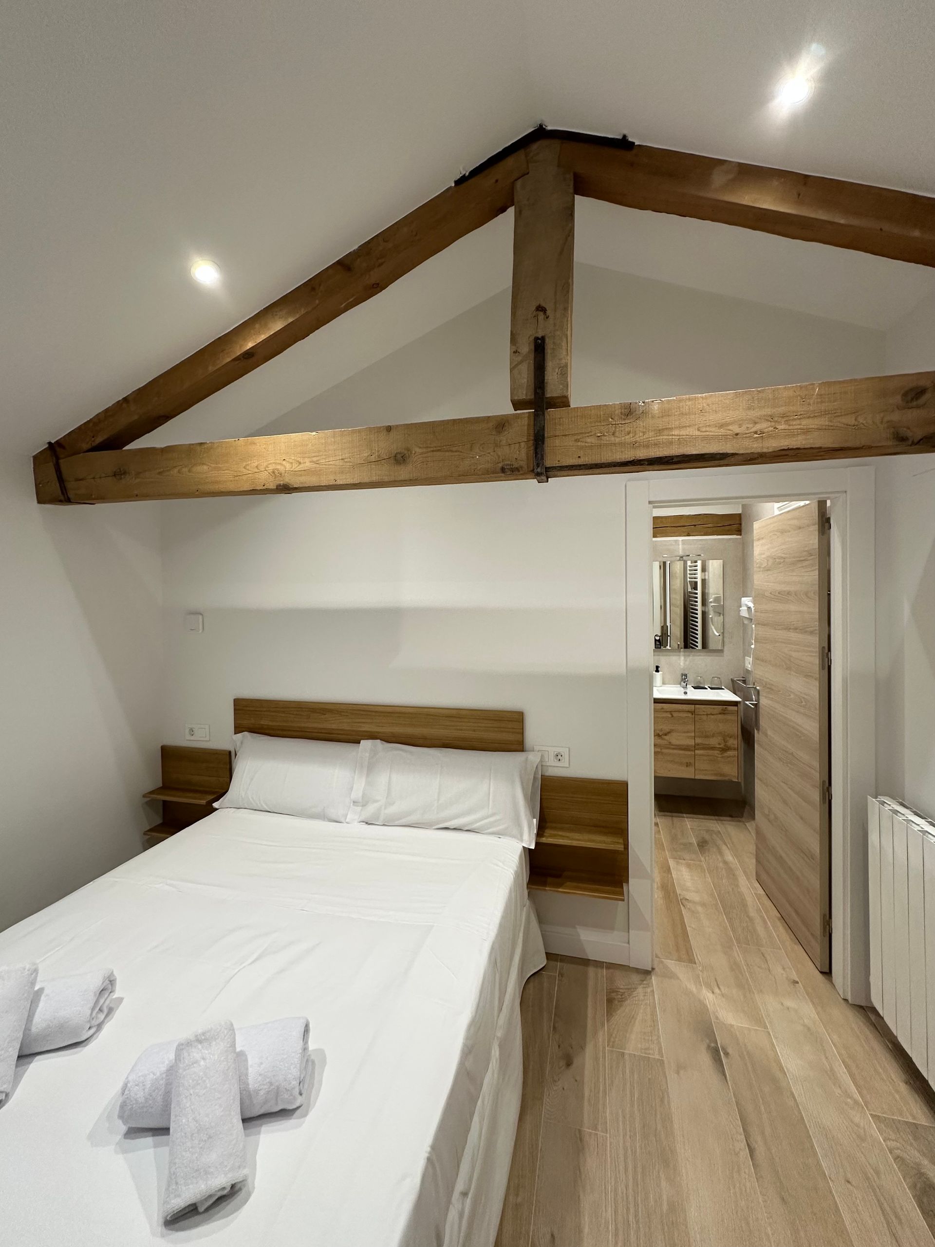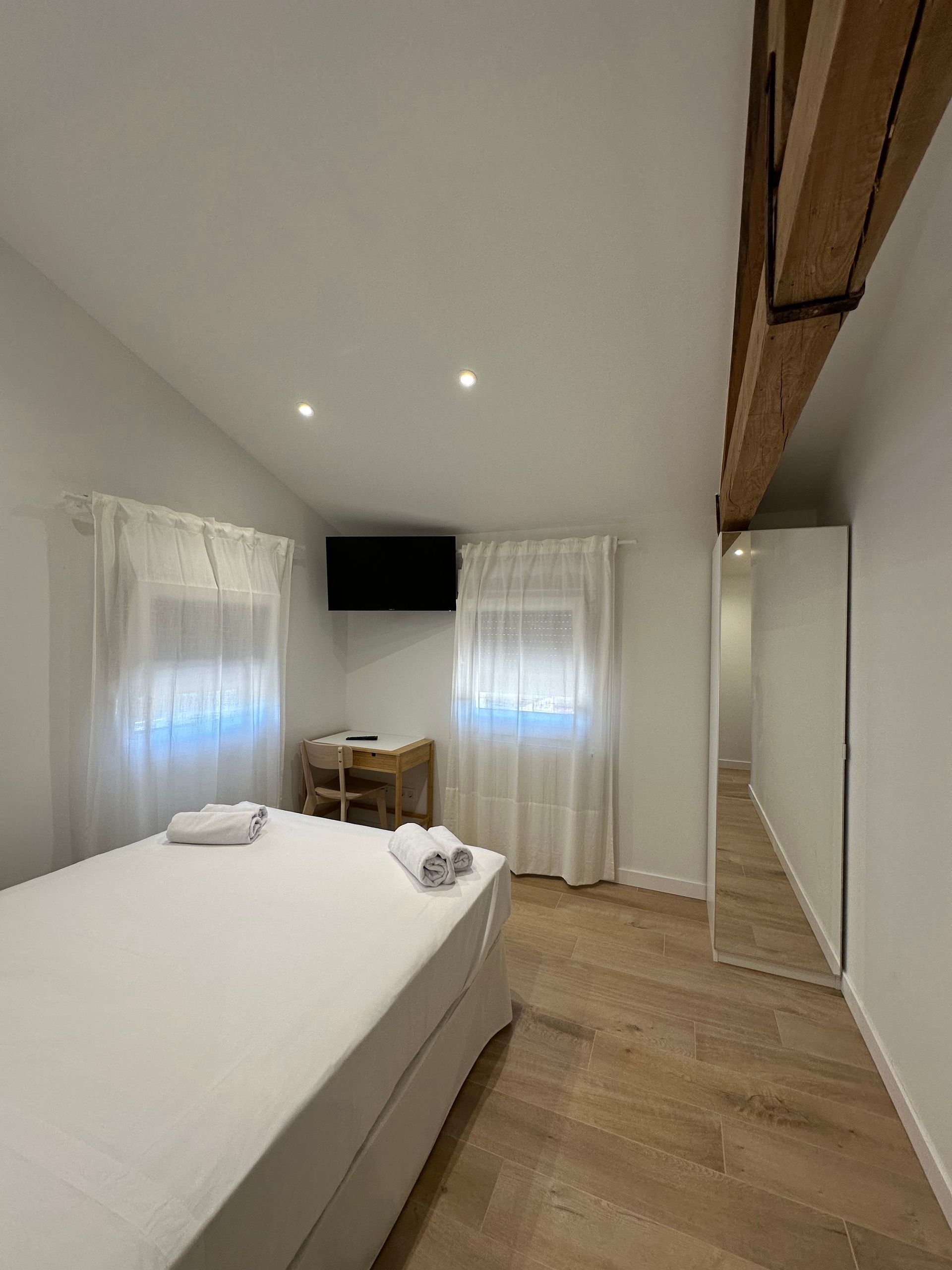 Junto al Arco del Amparo, en el entorno de Las Huelgas tenemos el reto de rehabilitar un antiguo molino, transformado en un hostal con siete habitaciones, cada una de ellas con baño propio. La intervención parte de una premisa fundamental: conservar y poner en valor los elementos originales del edificio, respetando su identidad histórica y su carácter constructivo, adaptándolo al mismo tiempo a un nuevo uso vinculado a la hospitalidad.