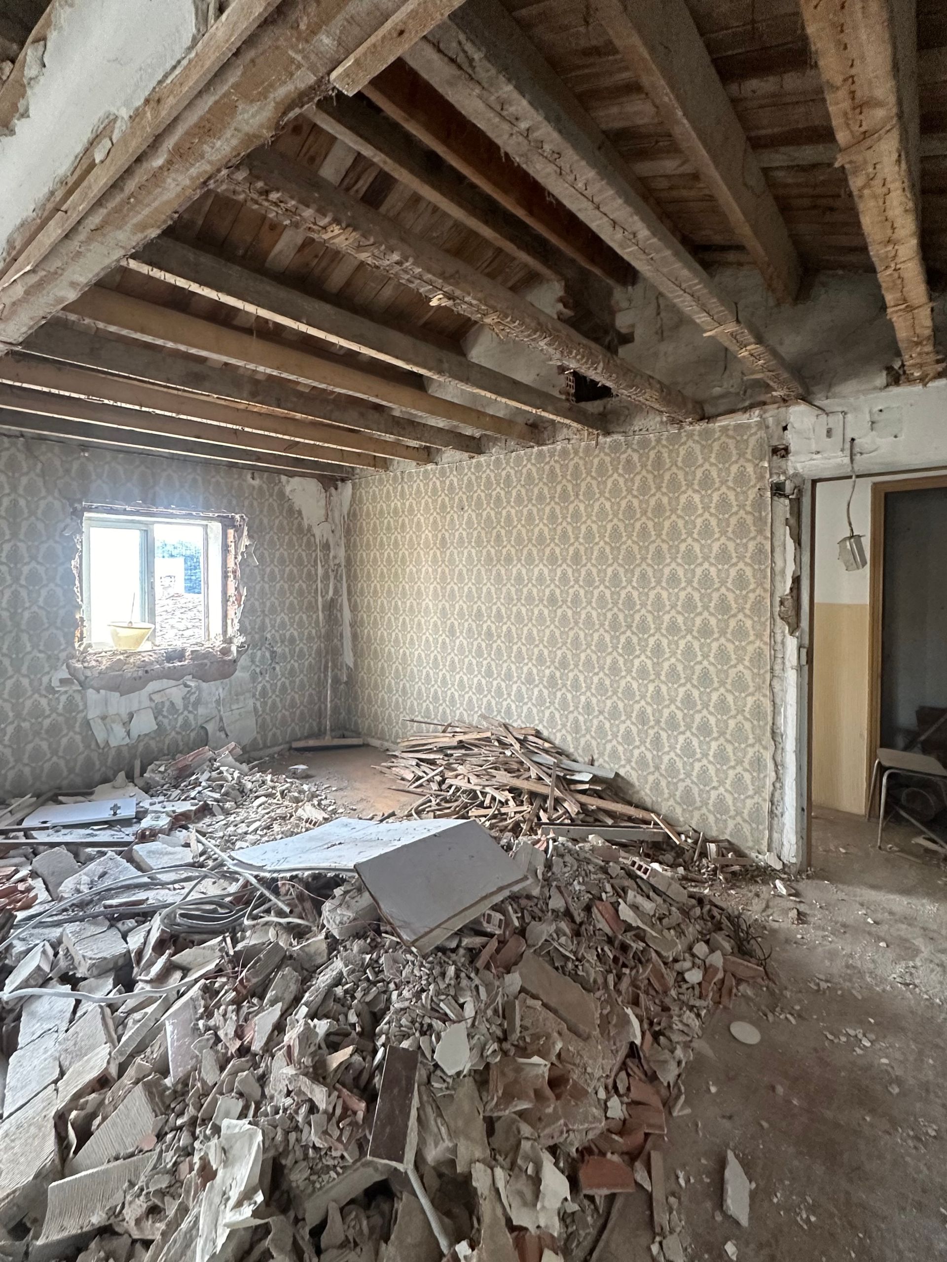 Partiendo del estado en el que se encontraba la vivienda, se decidió la demolición completa de la misma para así poder conseguir los objetivos de funcionalidad y diseño solicitados por los clientes