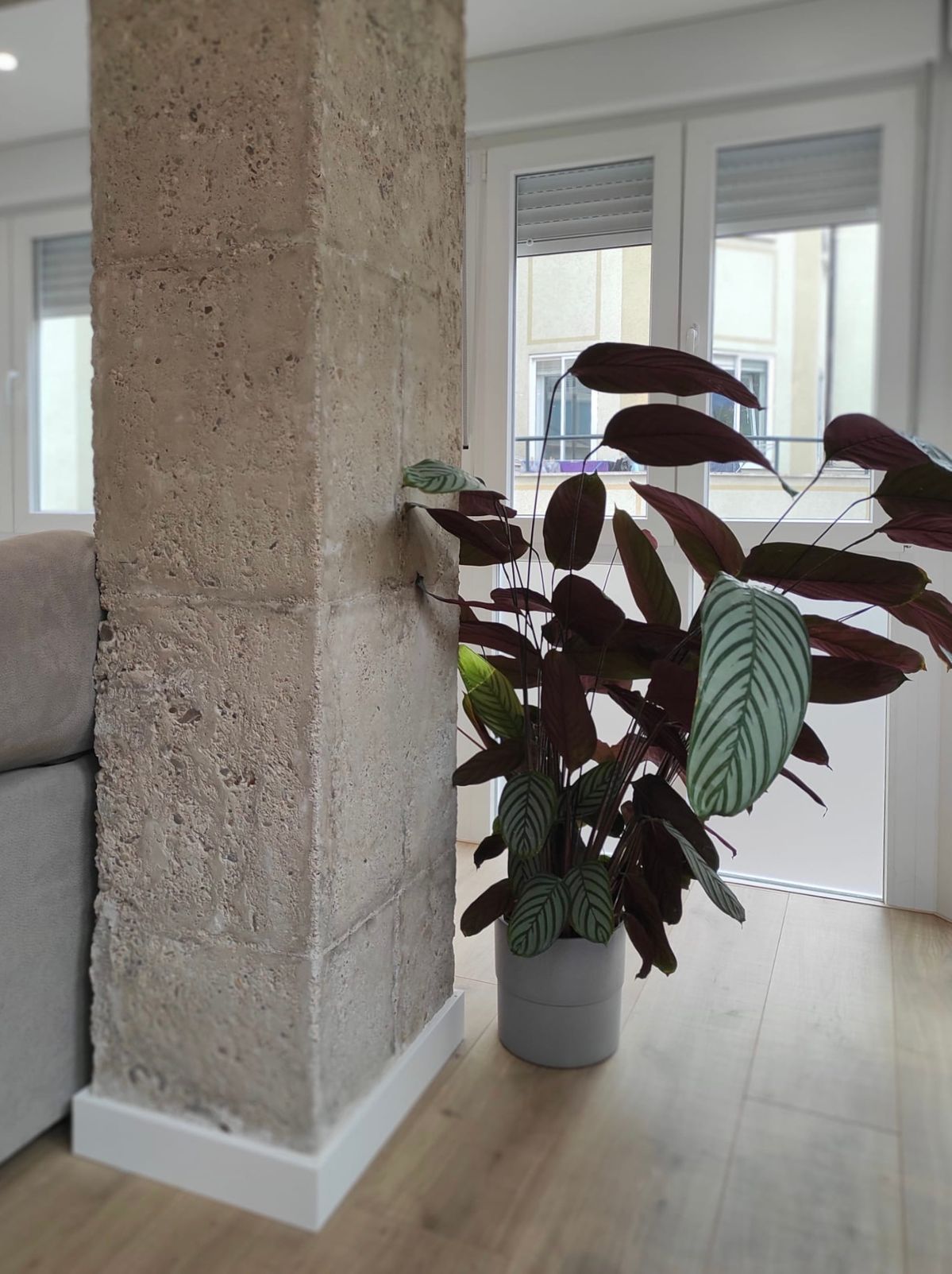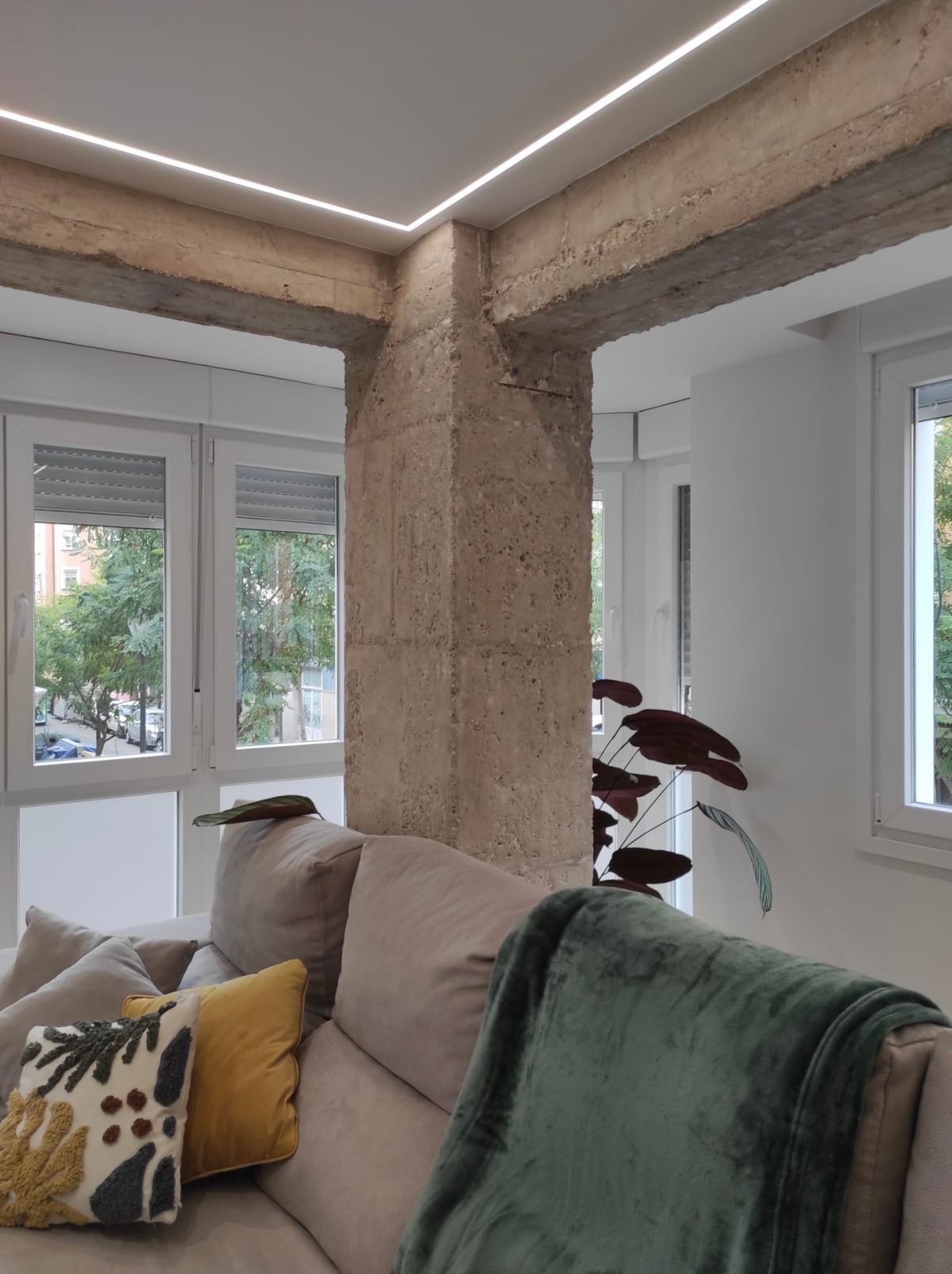 A través de la decoración y dando una gran importancia al hormigón que nos encontramos en las grandes vigas de cuelgue que recorren la dimensión longitudinal de toda la vivienda, generamos un ambiente cálido y agradable a lo largo de todas las estancias.